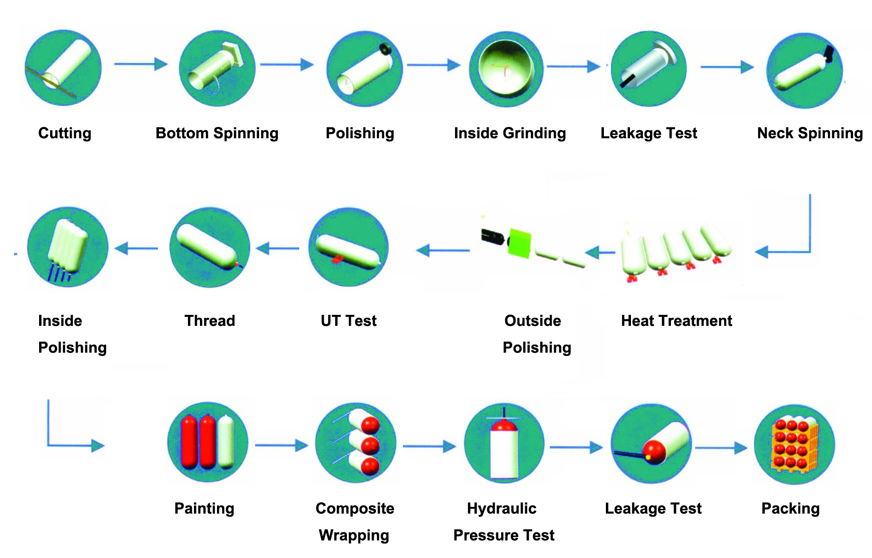 We supply high quality glass fiber hoop-wrapped CNG cylinders with size ranging from 325mm to 406mm, and water capacity from 55L to 212L, approved by ISO11439, ECE R110, and so on.